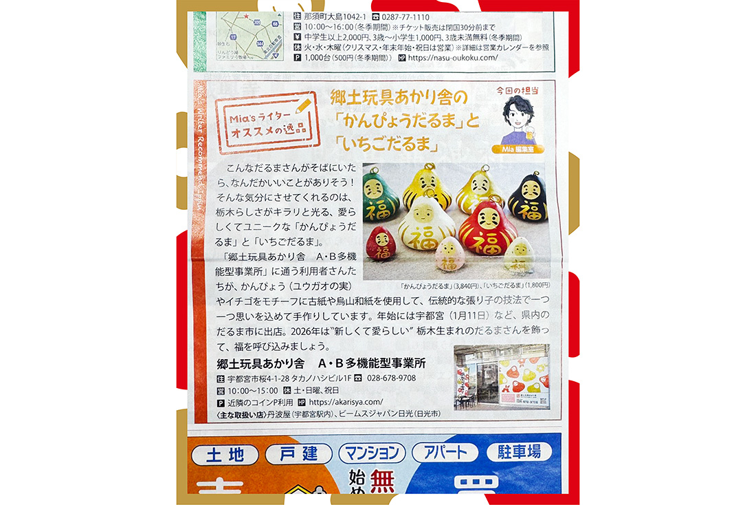 地元(栃木県)にちなんだ郷土玩具を製作し、